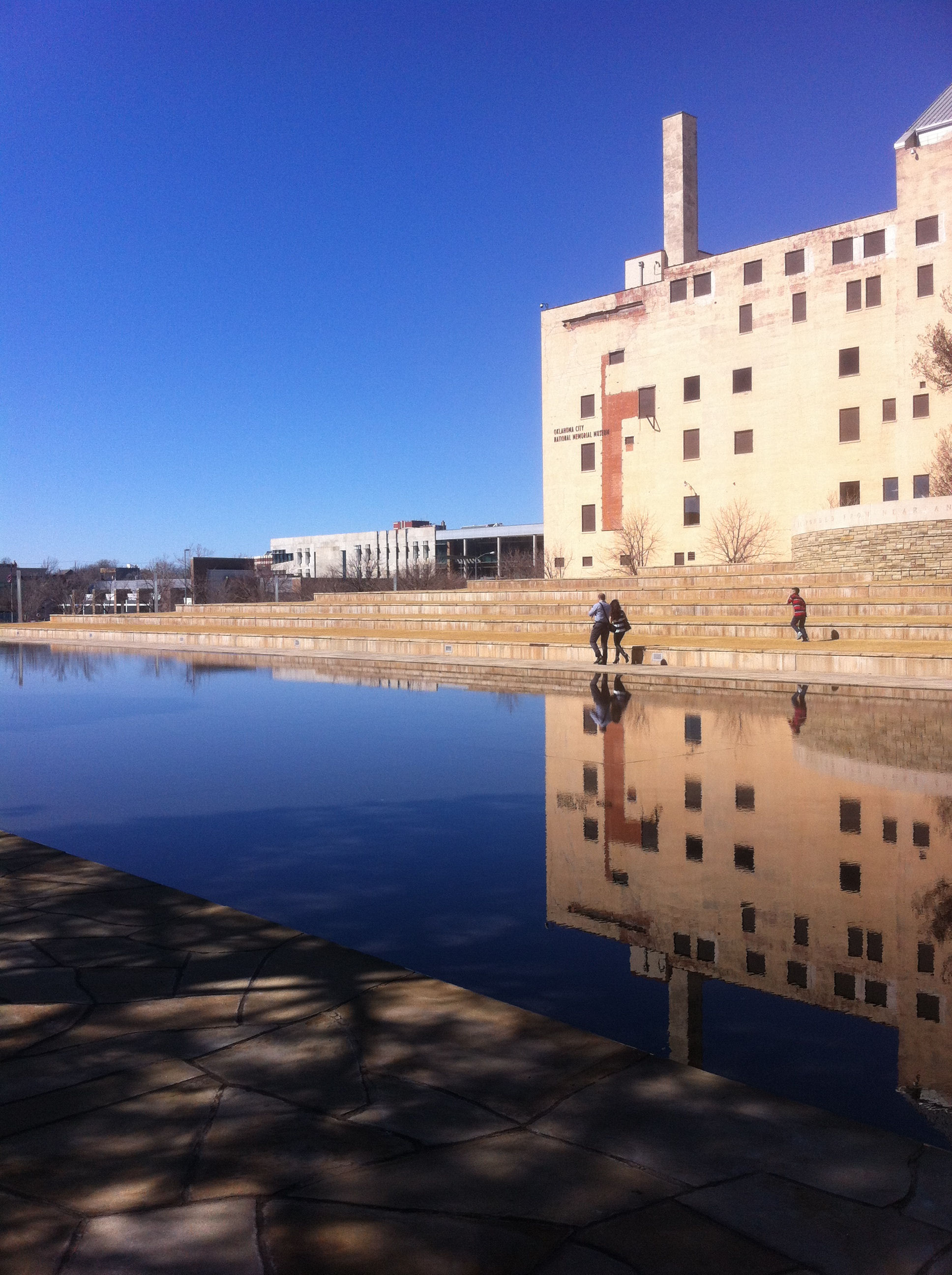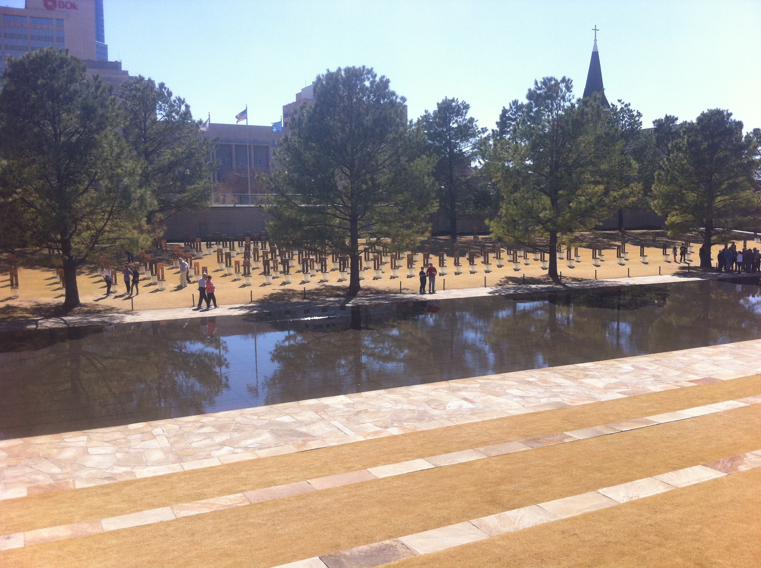 Mitch was feeling a little better after lunch, so we stopped by the Oklahoma City National Memorial, the site of the bombing of the Alfred P. Murrah Federal Building on April 19, 1995. Had I known we were going to make this stop, I would have brought my Nikon! I missed getting some great shots at the memorial. I’ll just have to go back! 🙂 Here are the photos I captured with my phone.