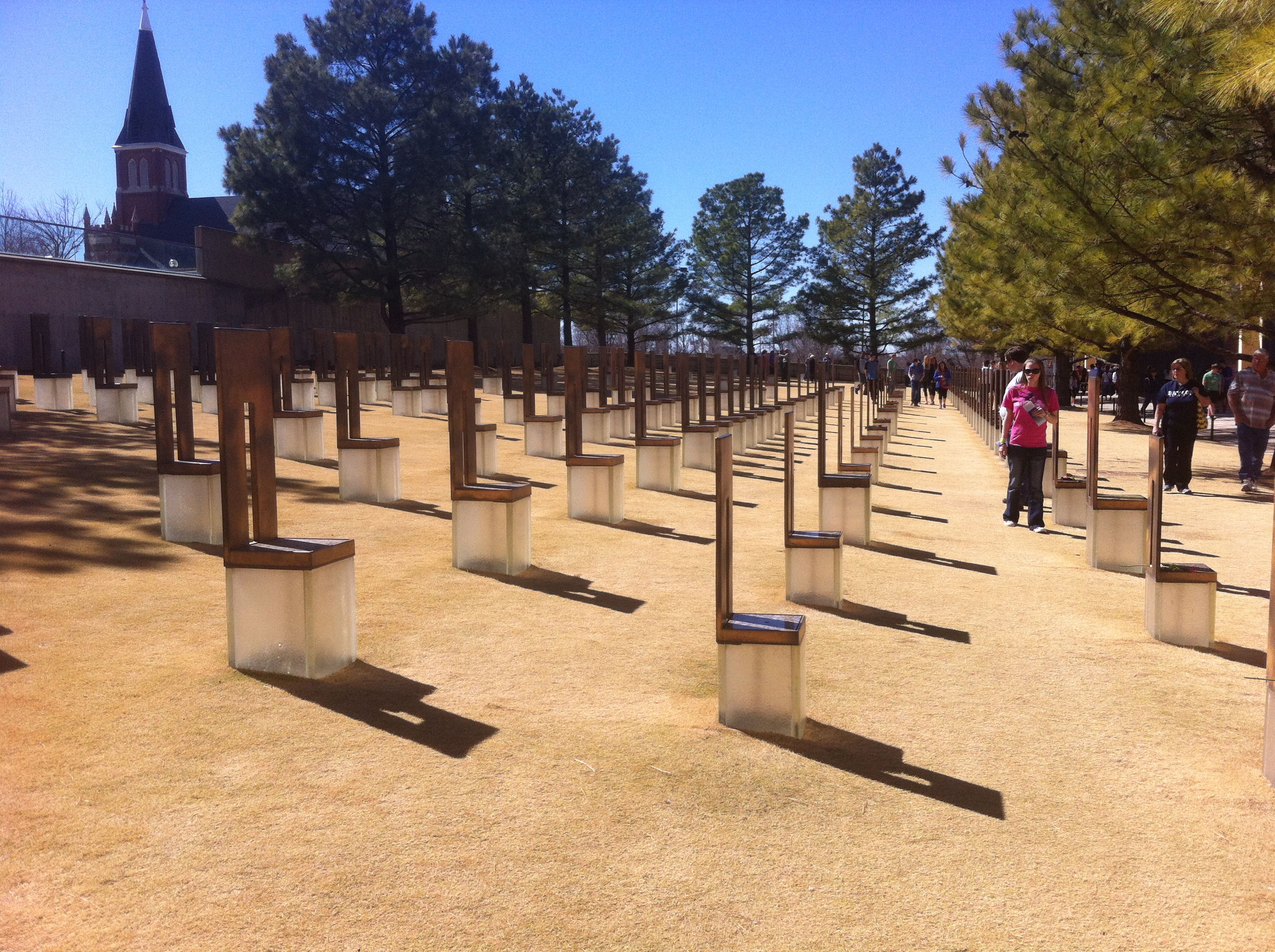 I was 17 years old in 1995. I remember the pain in my chest as I watched the tragedy unfold on TV. Right as we crossed the street to the memorial, a speeding ambulance went by with siren blaring. I imagined how that sound was multiplied by 100 on  that horrific day. As we stepped through the gates of the memorial and I tried to explain the tragedy to my kids in hushed tones, I could feel the sadness of that place press in around me. The ground has been hallowed by the suffering of the wounded, the bravery of the rescuers and the tears of those missing loved ones. I felt a lump in my throat as I saw the tiny empty chairs, in honor of the children who died. As I stood with my own sweet children around me,  I thought of the parents who lost a child all too soon on that day. I was shocked to read that sixteen buildings had to be torn down due to the damage of the explosion! The hardest part of being there was trying to answer my innocent children’s question of why. “Why would he do this, Mom?” The only answer is sin. A depraved man lashing out in violence. A man lost, without God! Standing on that hallowed ground renewed a vision of a lost world in my mind. Oklahoma is part of the “Bible belt”. It was the only state in the last election in which every single county voted Republican! But conservative politics and a church on every corner doesn’t guarantee healthy, thriving families or protection from evil. There are many in our state who are still seeking an answer, and Christ is that answer.  HE must do a work in hearts, and we must introduce them to Him.