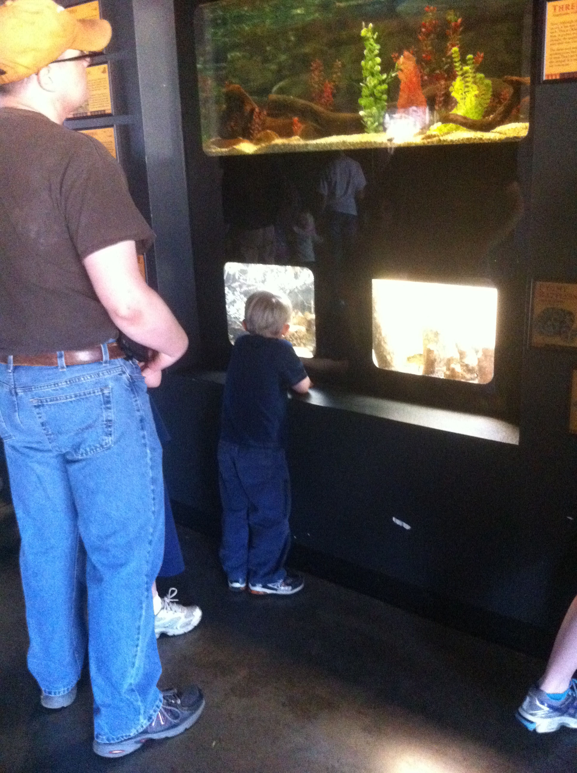 We visited the zoo, which, like every zoo trip, was a bit of a disappointment. I either pick days when the weather is horrible, our allergies go nuts, or the animals are out of sight. Yesterday, the weather was great, but many animals were hidden away. The worst part was that suddenly, Mitchell’s allergies went crazy! He broke out in hives, his eyes started itching and watering and he couldn’t quit sneezing. We had almost seen everything in the two hours we were there, but as soon as we saw how miserable he was, we decided to leave. We missed the stingrays and a few other exhibits. We immediately bought some Benadryl for him and stopped for lunch. I didn’t want to bring my Nikon camera through the zoo, so I snapped some photos with my phone.