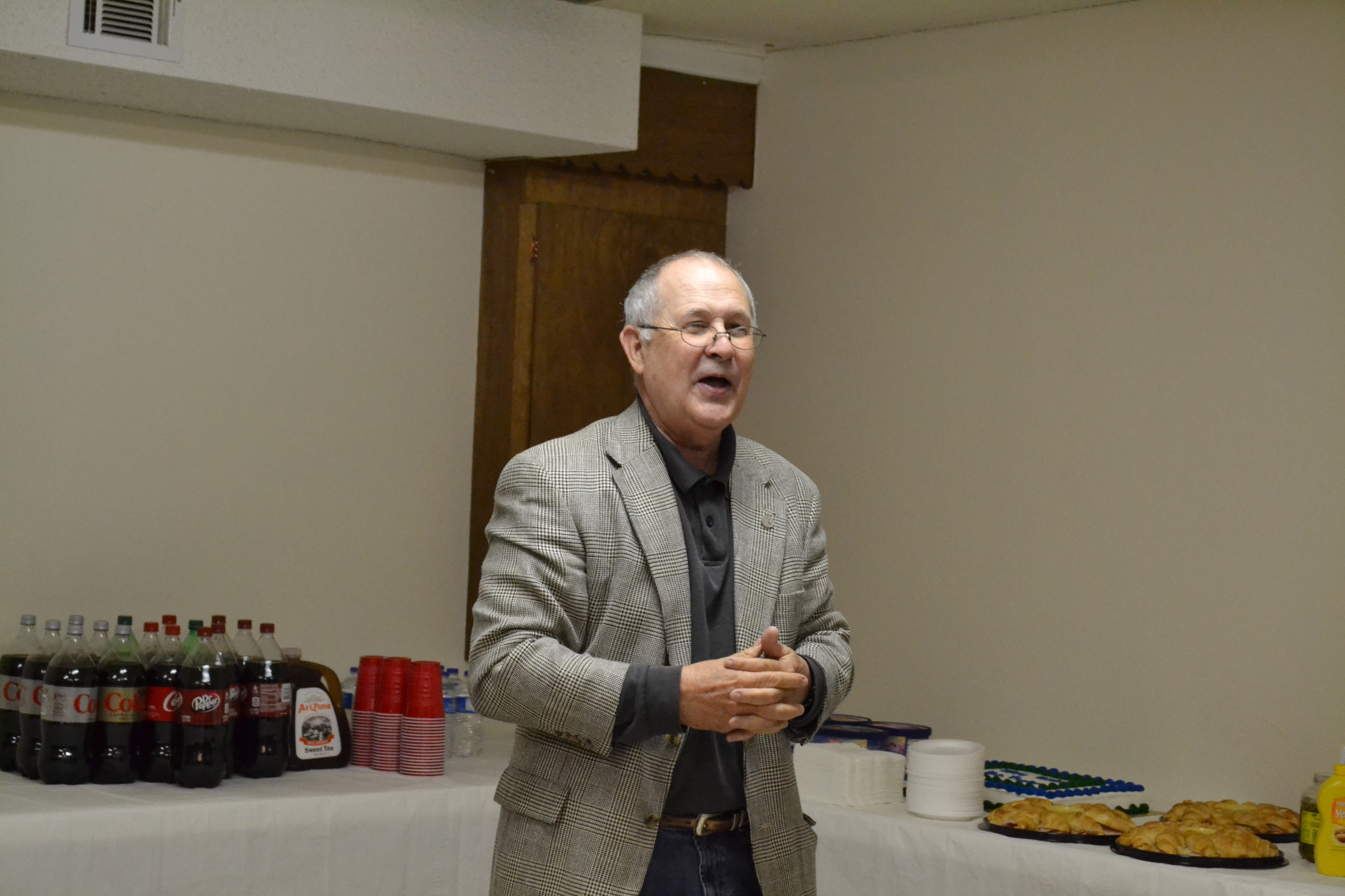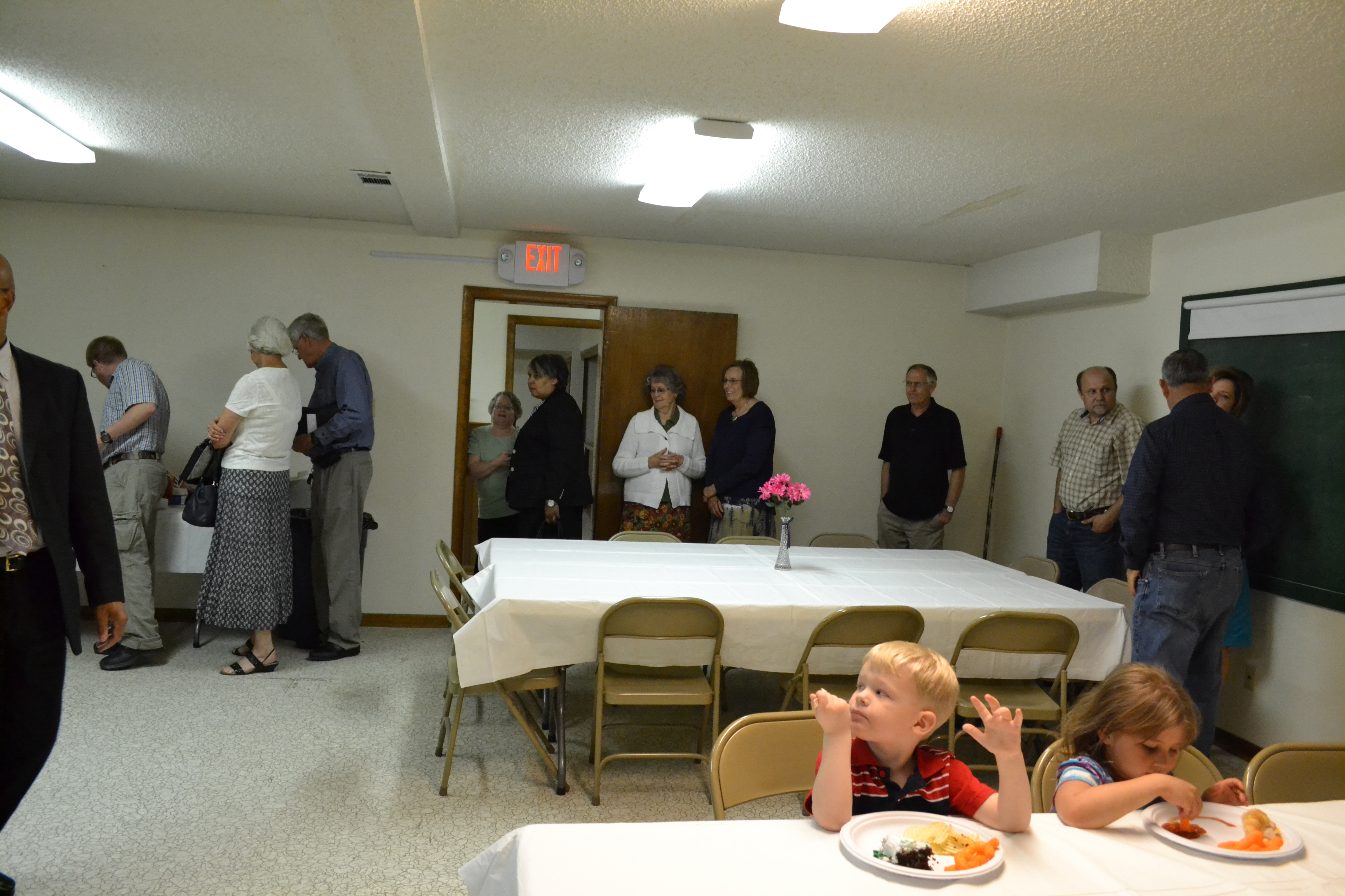 Bro. Steve led everyone in singing “Happy Birthday”. Do you see those sandwiches on the table on the right? They’re little croissant ham and cheese sandwiches and they were SO good!