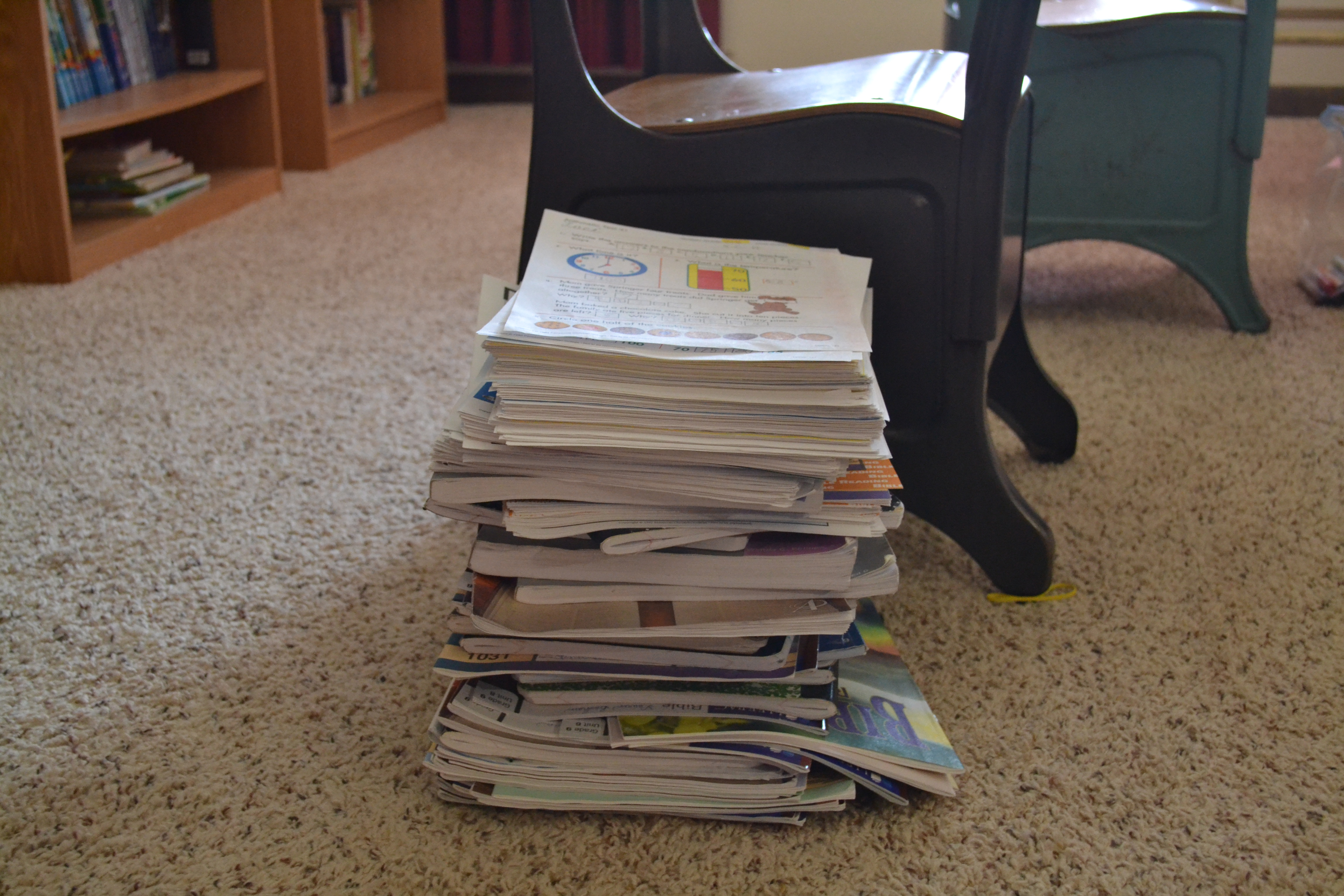 workThis is some of the work they completed this year. I usually go through their papers and compile a portfolio for each child every year. I am very excited to have taught a high-schooler and lived to tell about it.