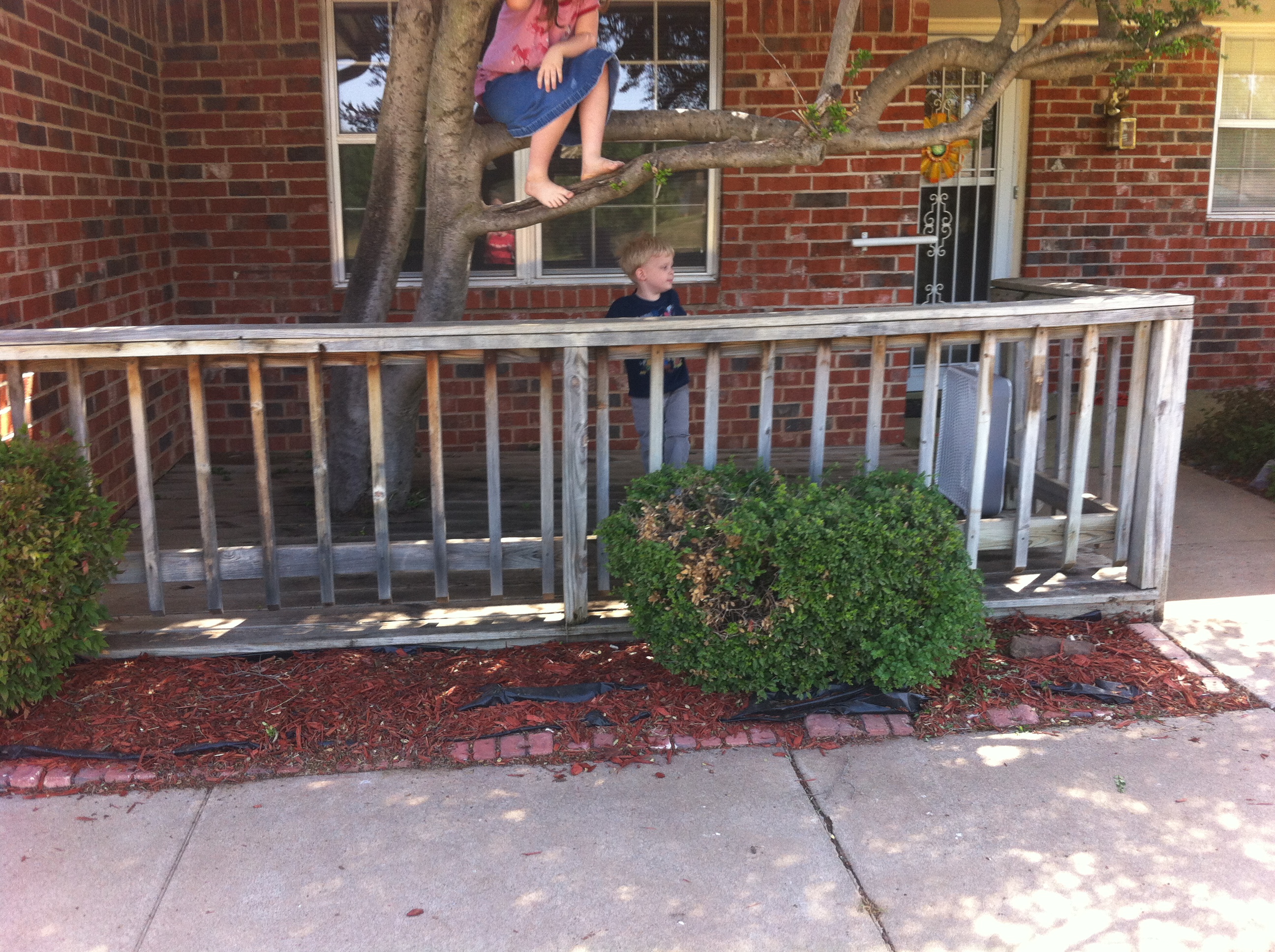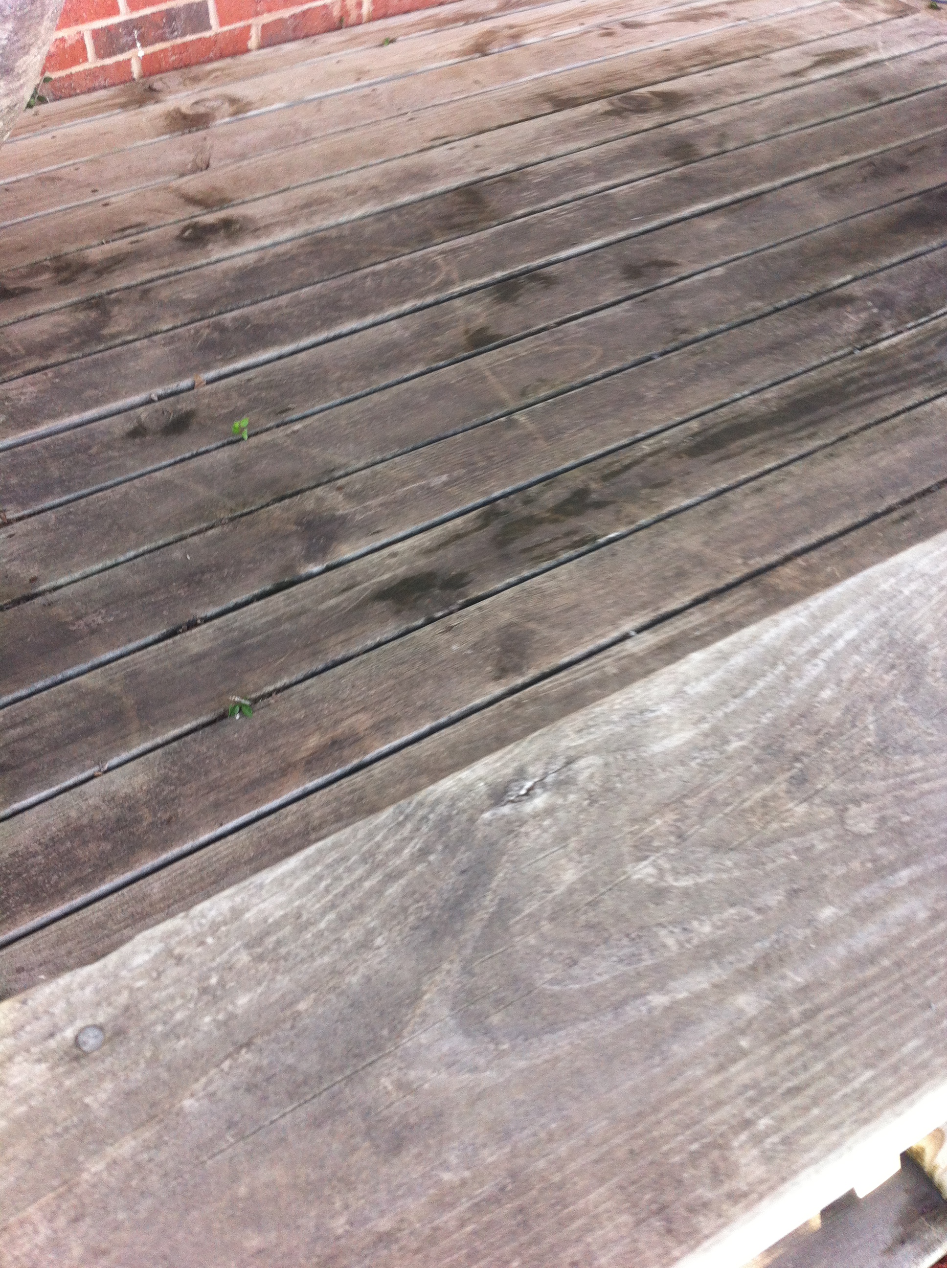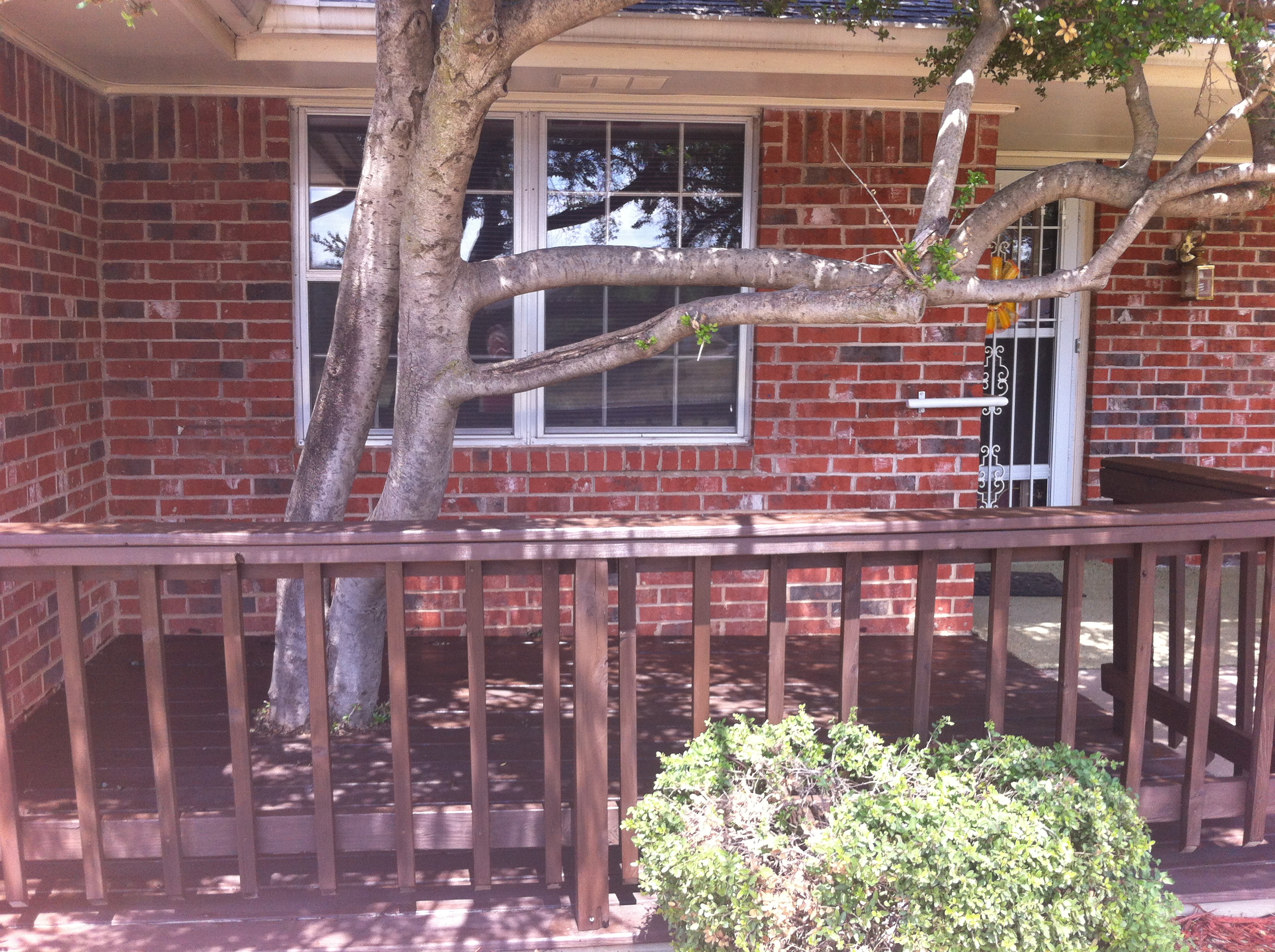 I don’t do a lot of outdoor work. I have terrible seasonal allergies – nasal and asthma. I also have very tender skin. I burn easily and I break out easily to grass and, of course, the dreaded poison ivy or oak! Despite all of that, today I was able to do a job that was outdoors and involved minimal exposure to my allergy triggers. What did I do? Oh, yeah, the title kinda gave it away. (snap!) I’m extremely pleased with my new front porch. Here are the before and after photos: