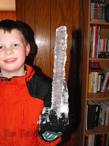Mitchell got this HUGE icicle off the house when we lived in Hope. We had something like eight inches of snow in one night and it pretty much shut down the town. Which was fine with me. π