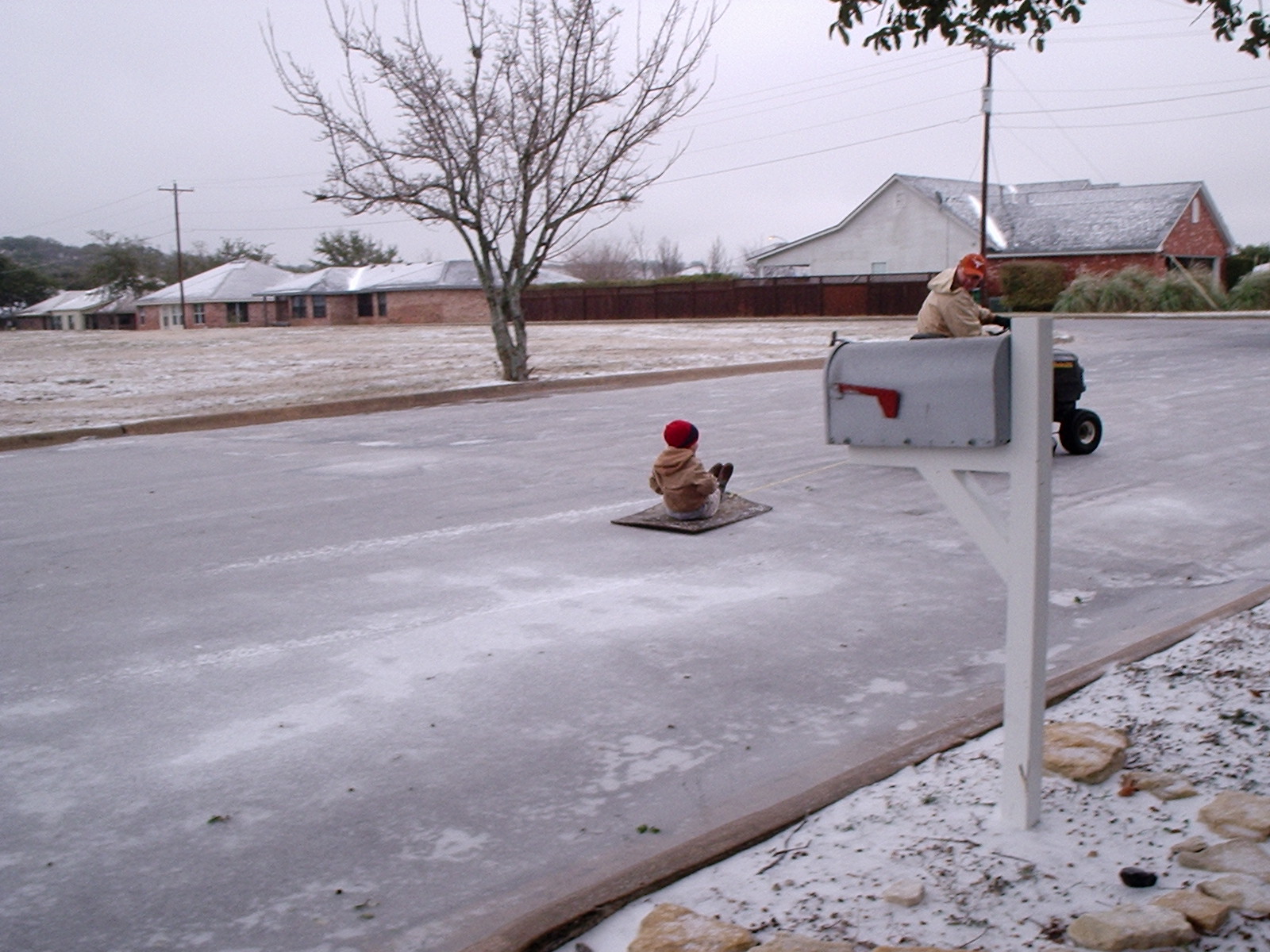 I haven’t lived anywhere that was as warm all year long as central Texas. It was a real bummer to cook Thanksgiving dinner in 90 degree heat. The winters were mild, and, for someone who enjoys all four seasons, this was a disappointment. We didn’t really get snow, but occasionally we got sleet and ice. We’ve had a mild winter here this year, too. In fact, it’s reminding me of Texas! But today, the temperatures are low enough to give us some sleet outside – nothing like the pictures I’m sharing, but it reminded me of this exciting day, back in early 2007.