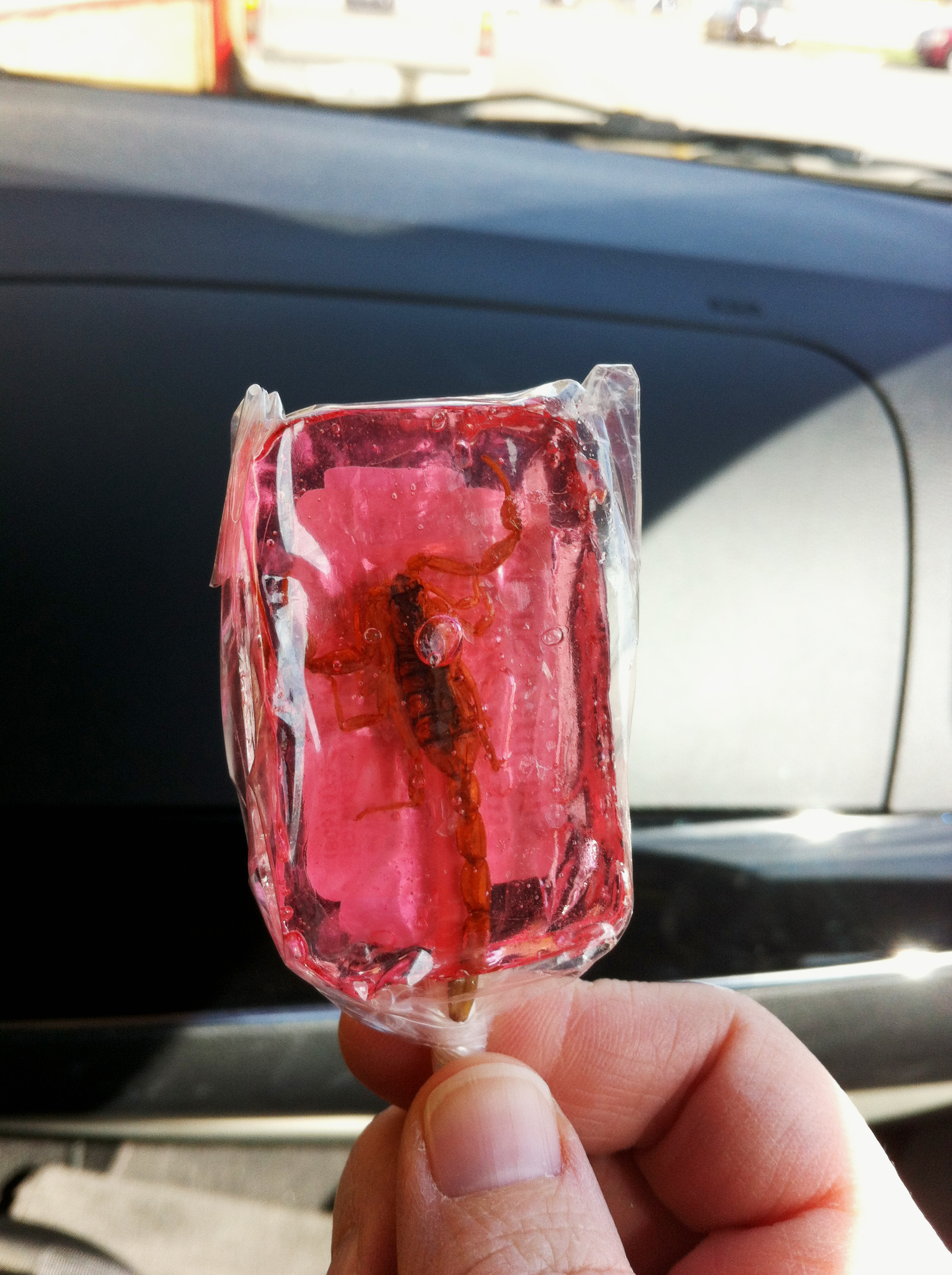 Our final stop was the gift shop. Mitchell bought this scorpion sucker. Yes! It’s actually edible! *shudder*