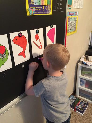 K is for “Kindergarten”. Matthew enjoyed doing his first week of K5! He greeted us each morning for the first three days of school with this: