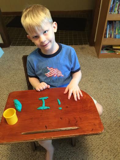 Matt enjoyed using play-dough in phonics time to make some letters. Here’s his “I”. He also made “U” and “E”.