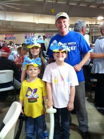 Mark Costello and Leslie, Laci and Matt at the fish fry last May. Mr. Costello gave out the cute elephant hats that the kids are wearing.