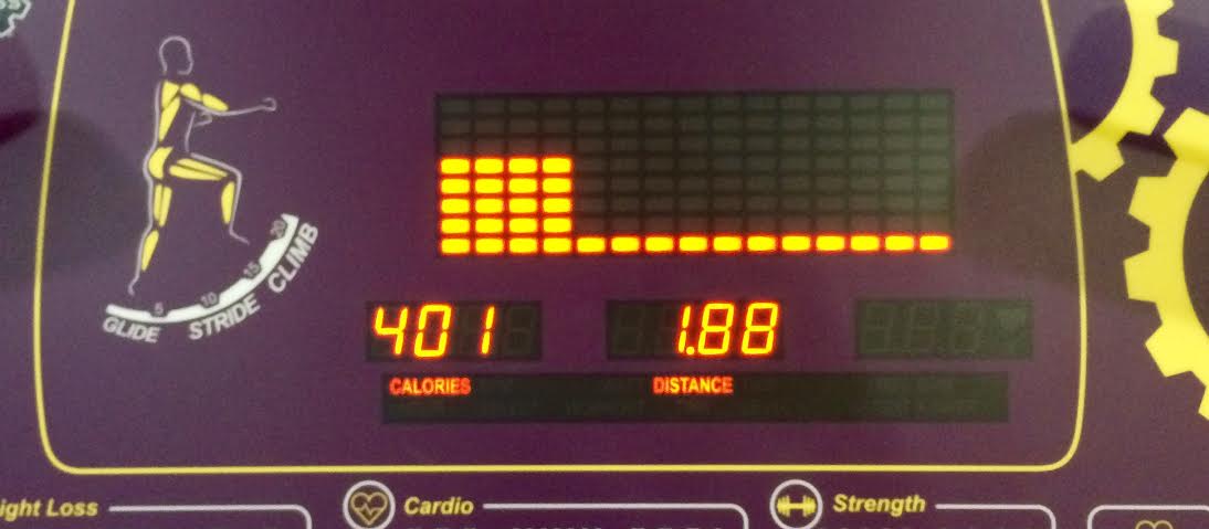 I hit an all-time distance and calorie burn record in thirty minutes on the elliptical. (But, since I didn’t get up at 5:30, I was about 15 minutes late starting school.) The best part was that I was able to walk out after this.