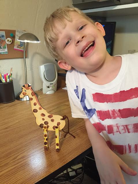 I am glad you were able to post something; it is a treat to see the photos and read what is happening. I love the giraffe! Laci’s project looks very nice and neat, quite impressive. Mitchell looks absorbed in his work in both pictures. Wish I were there to help out!