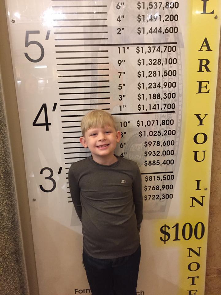 The gift shop area had a height chart, only it was “How Tall Are You In Money?” Here we are: