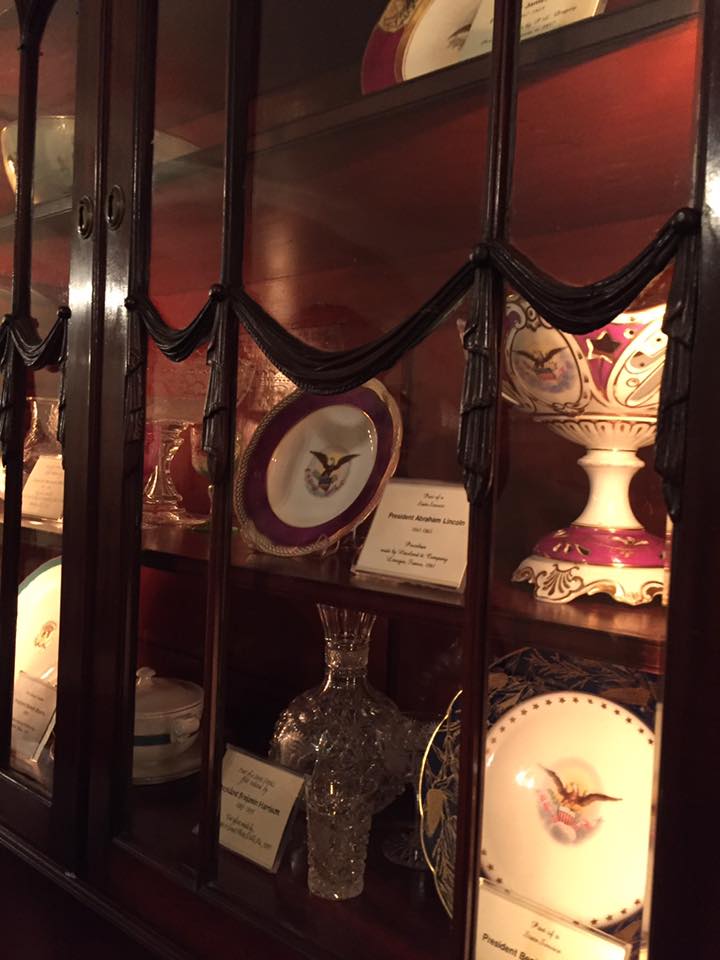 The Lincoln China has my favorite color (purple) in the pattern, but I do not think it’s very attractive. It looks a bit gaudy to me, which fits with what I have read about Mary Lincoln’s personality. Of course, this was another difficult administration both professionally and for the family. There is more Presidential China on display at the Smithsonian Museum of American History. I enjoyed that display more because it was more accessible.
