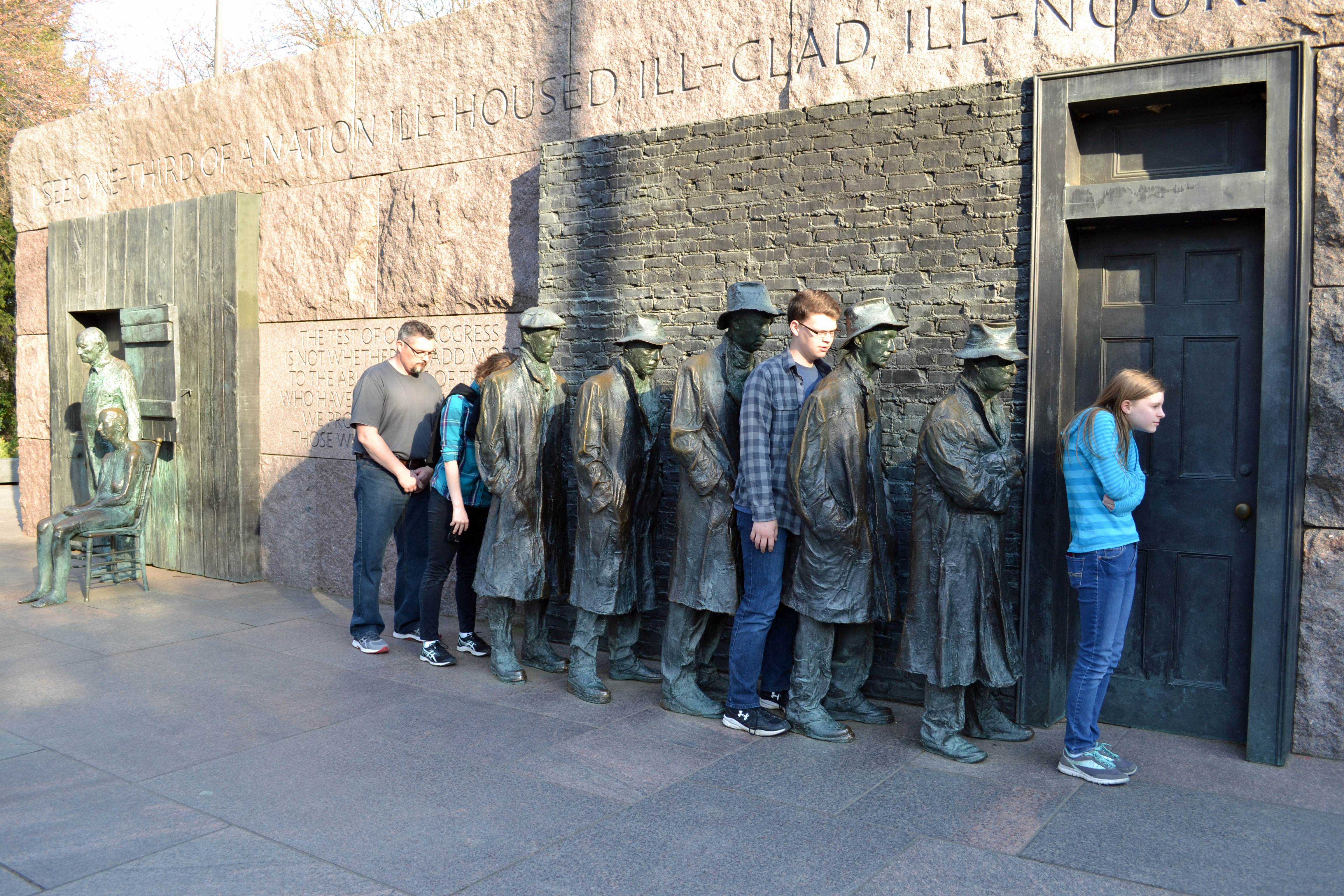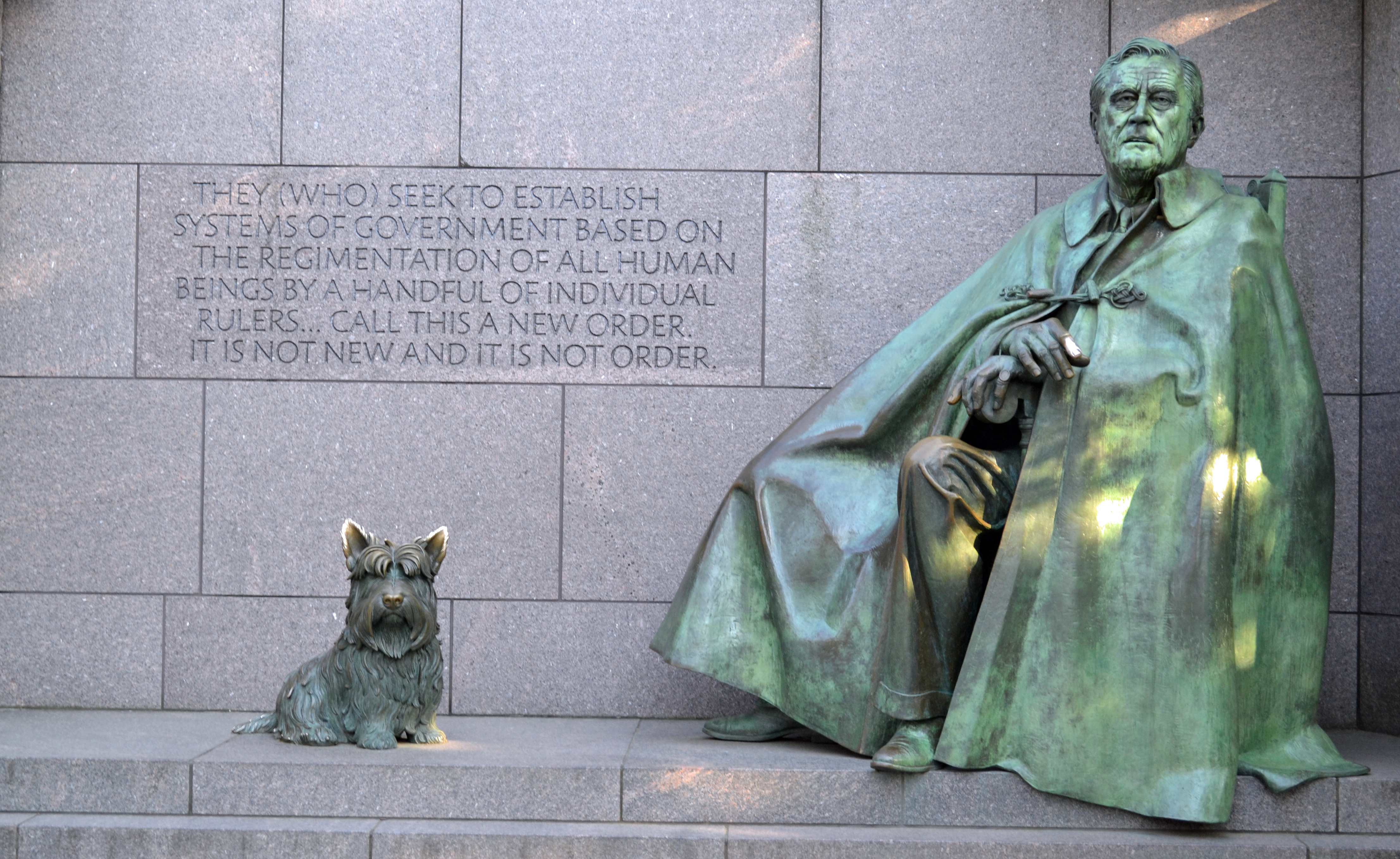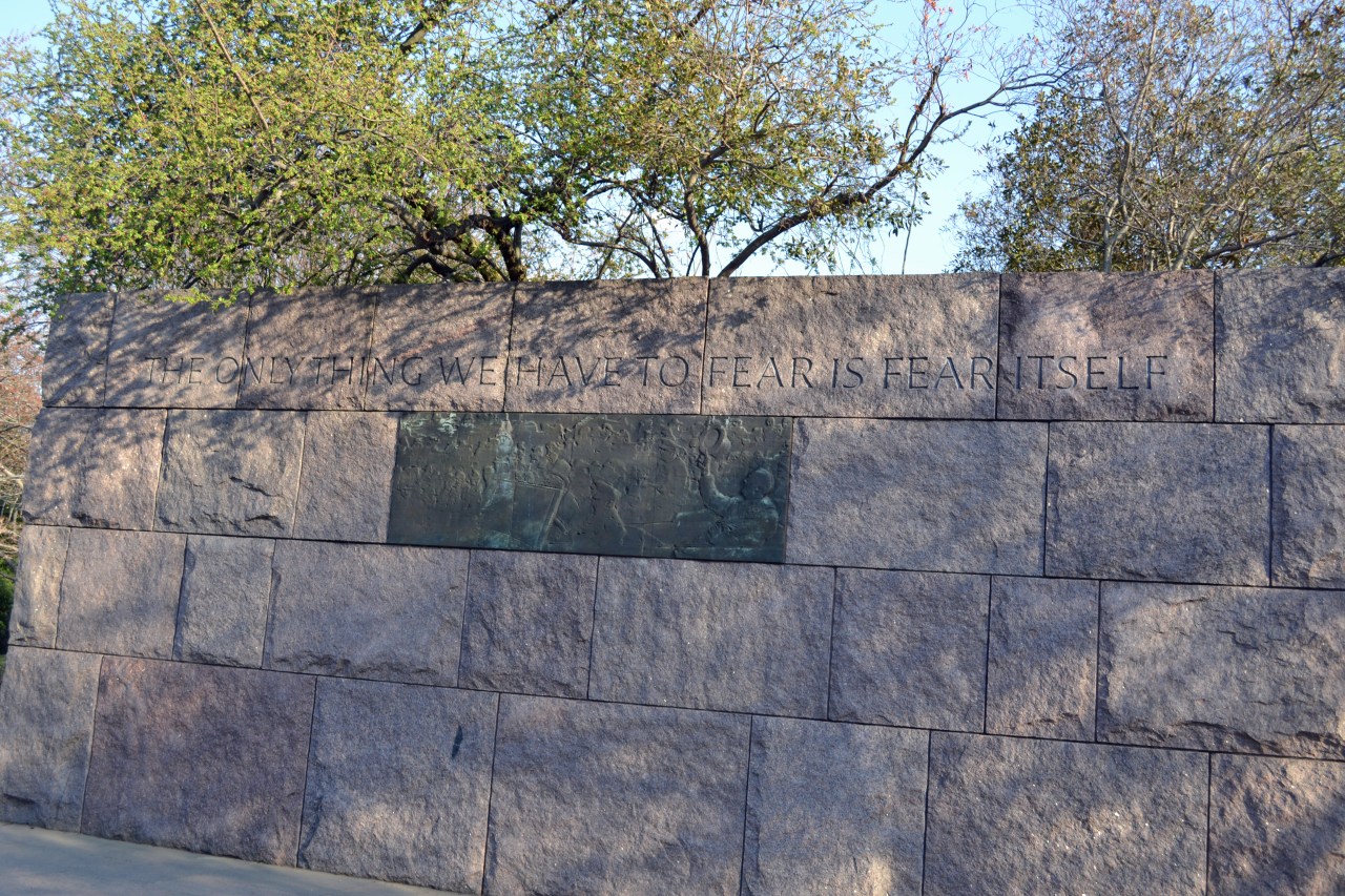 We found our way to the Franklin Delano Roosevelt Memorial after leaving the Vietnam Memorial. FDR was the longest-serving President in U.S. history. He was the first President to run for a third term in office…and then a fourth. He died on April 12, 1945, a little over a month into his fourth term (inauguration day used to be March 4). Harry S. Truman completed Roosevelt’s term in office.