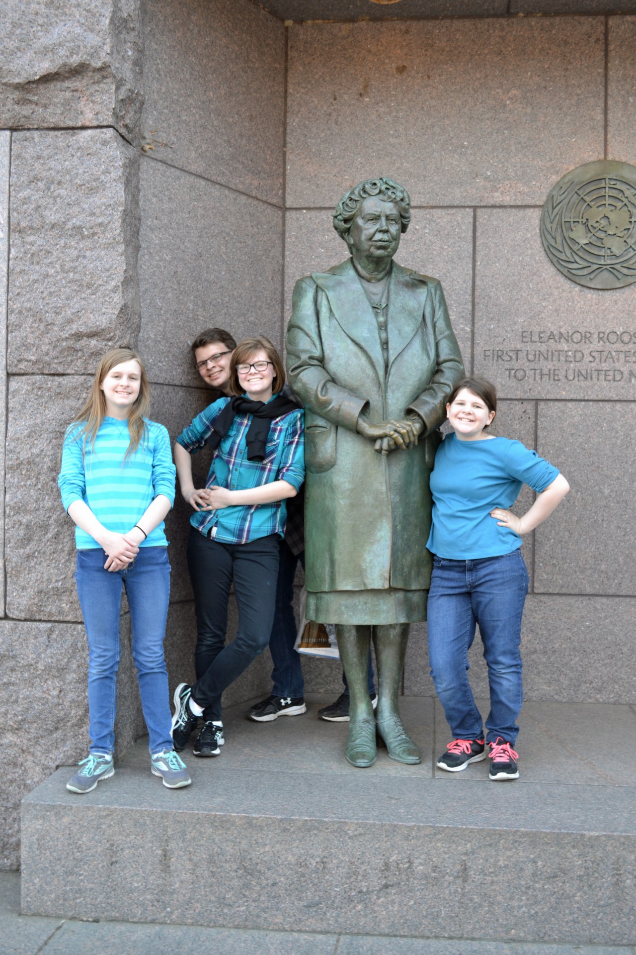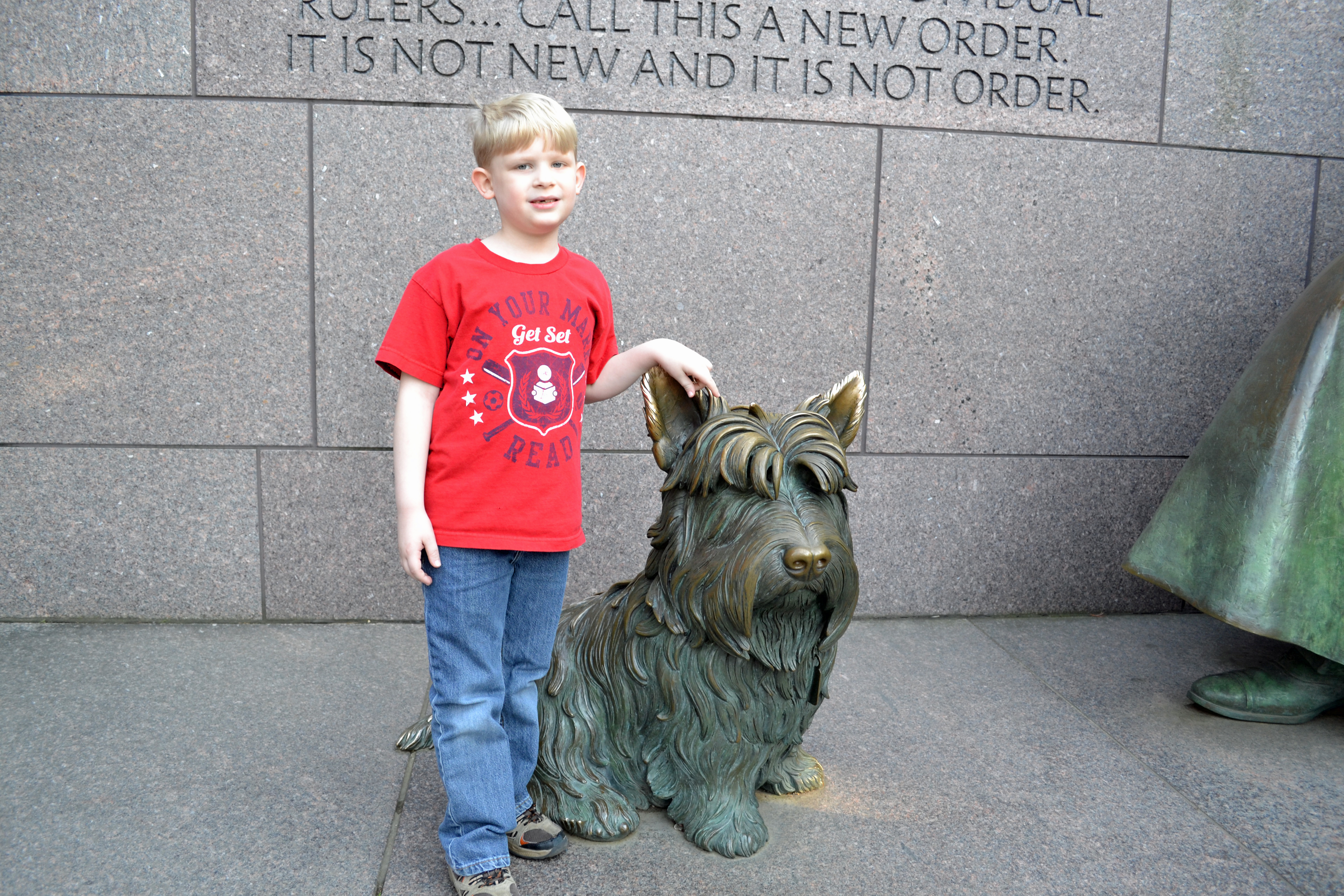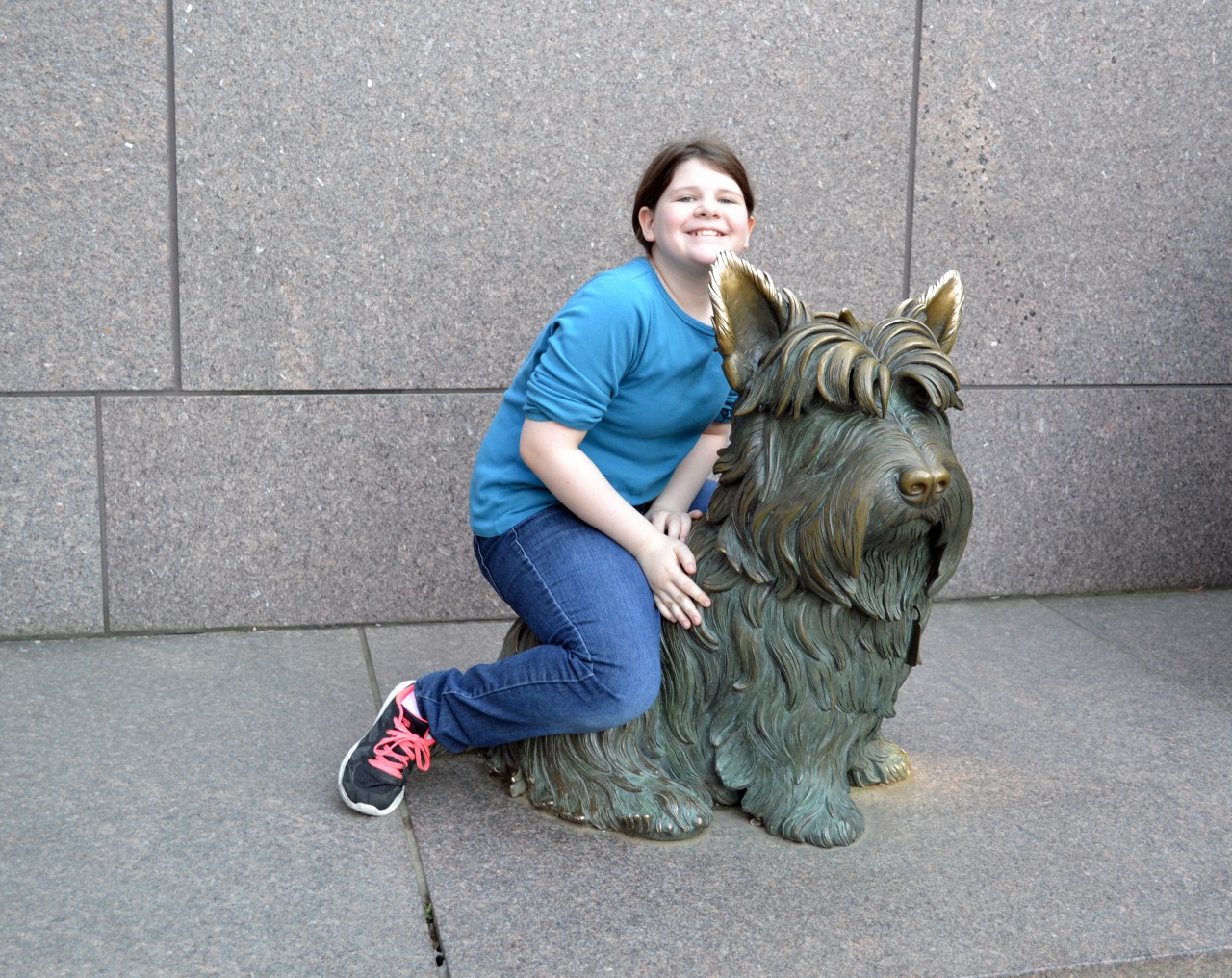 This was an impressive statue of Roosevelt – his cape conveniently hid his disability from the public – and their famous dog, Fala. The kids couldn’t resist getting close to the dog!