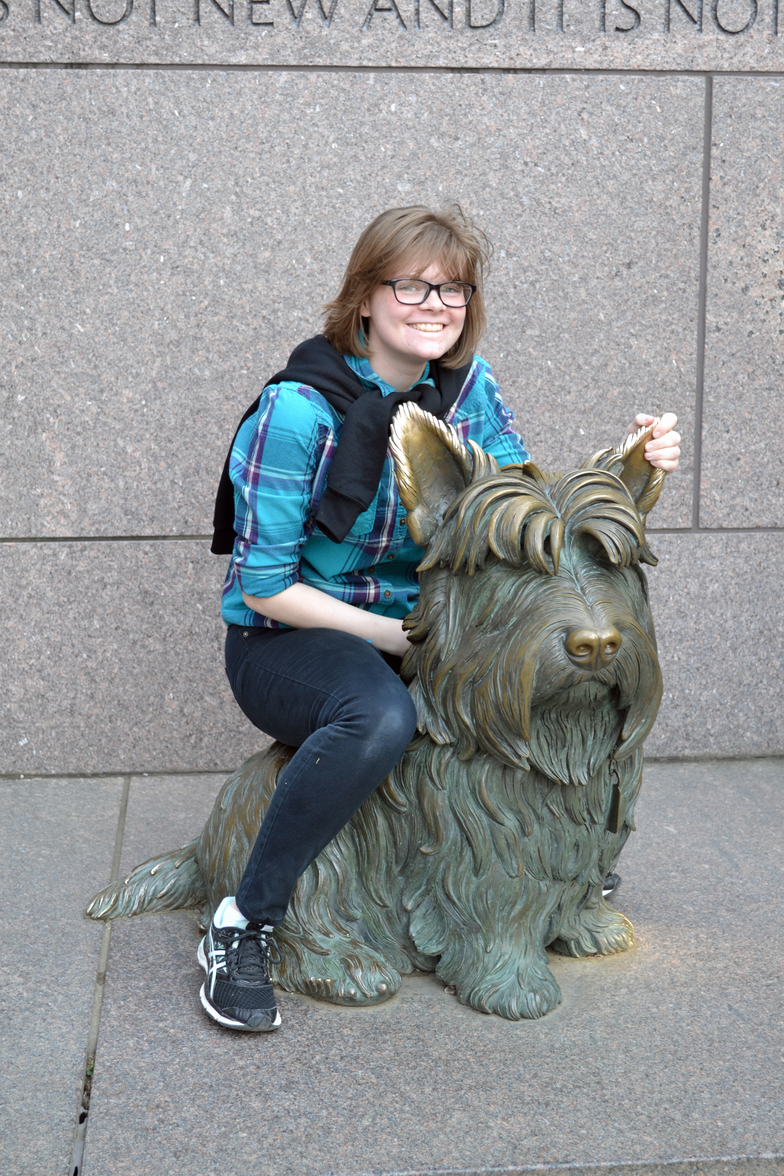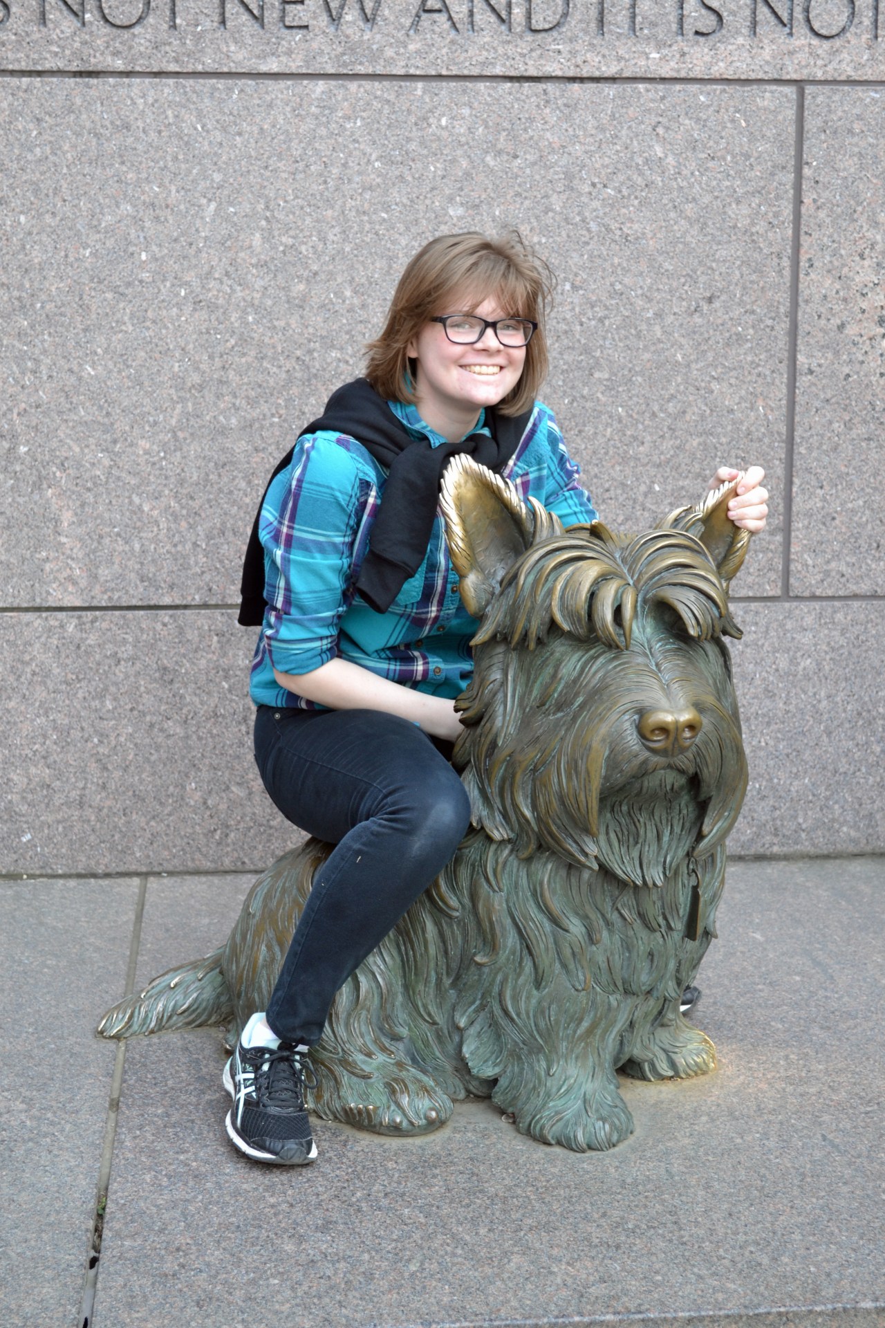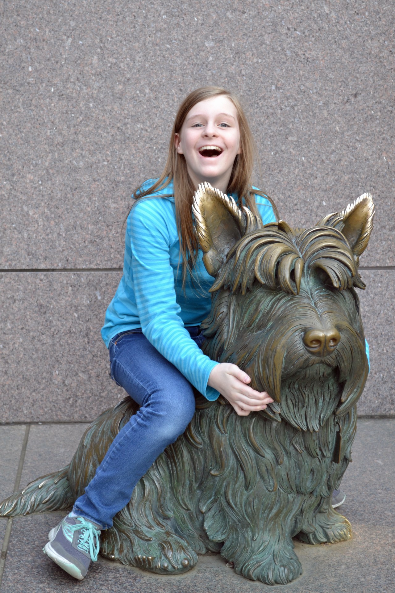 This was an impressive statue of Roosevelt – his cape conveniently hid his disability from the public – and their famous dog, Fala. The kids couldn’t resist getting close to the dog!