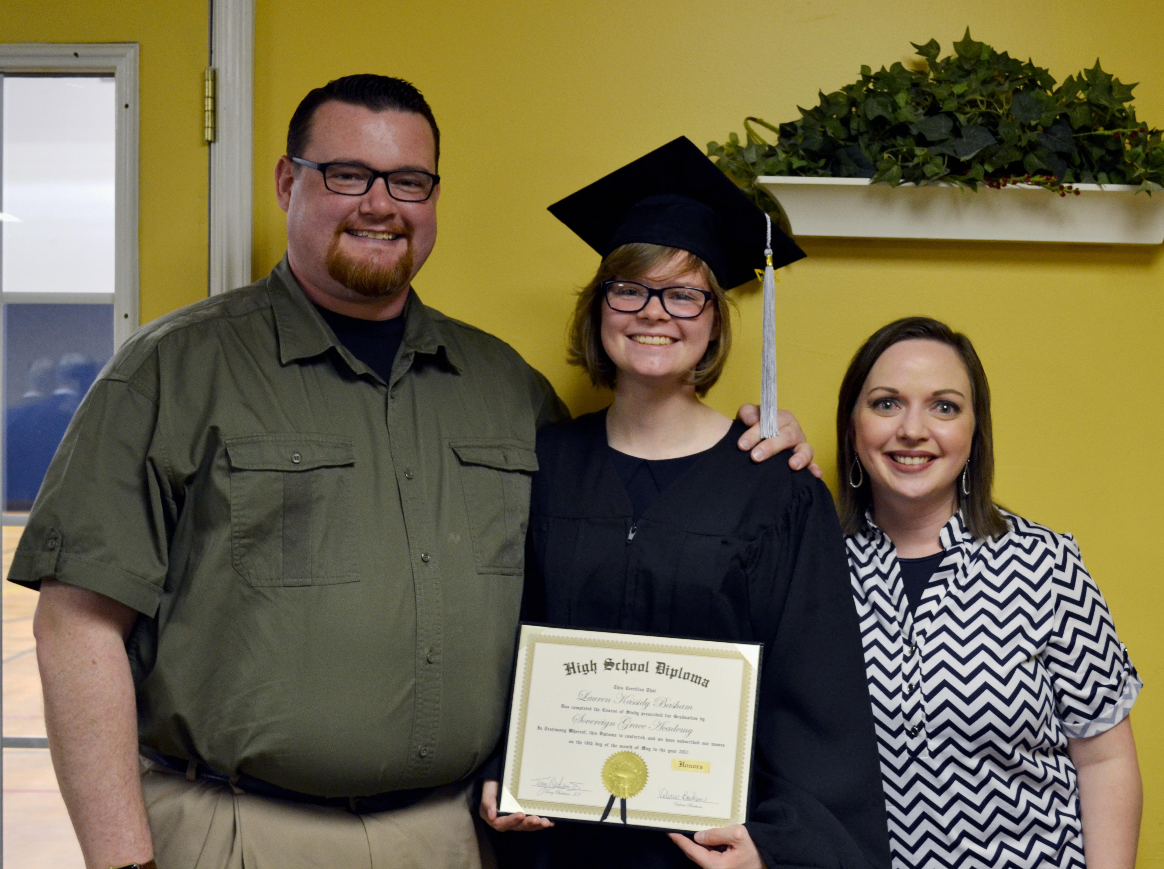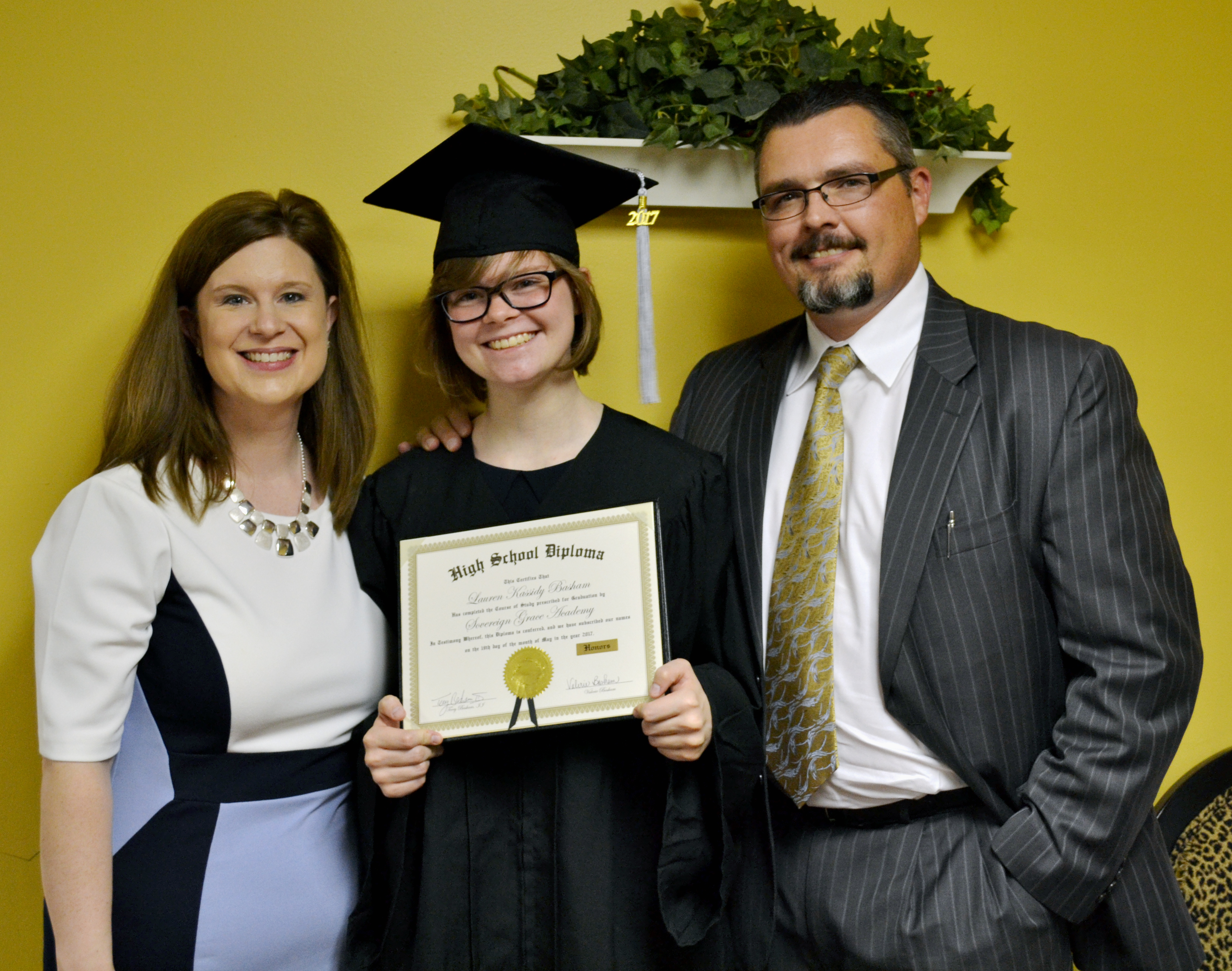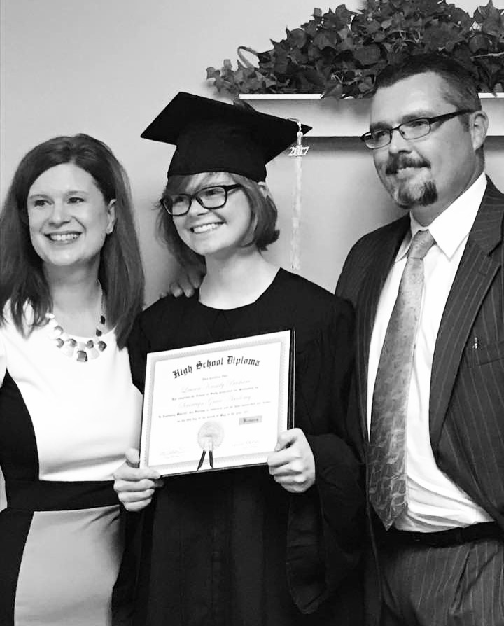 On May 19, 2017, Terry and I proudly watched our oldest child, Lauren Kassidy, walk the aisle to “Pomp & Circumstance” and receive her high school diploma. This was not only a huge first for her but for us as well. It was thrilling to see our first child not only graduate high school but graduate from our homeschool. She was able to participate in our local homeschool co-op’s graduation exercises, which was wonderful. We had the opportunity to give short speeches and present her her diploma. She was able to have the gown, mortarboard, and ceremony that I had always dreamed of giving her.