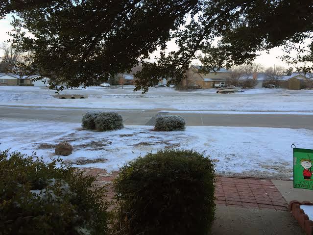 I just wanted to share a few more photos of our fun in the snow! 🙂   Working hard. 🙂   Lauren built a fort! No, she didn’t actually throw it. lol! I liked this picture of our house. If you didn’t know better, would you think we lived in Alaska? Nope, didn’t think so. 😉  Snowy …