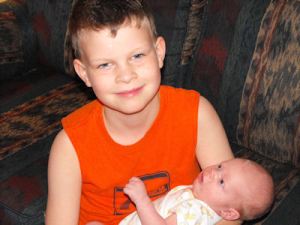 For now, here is a photo of Mitch with his favorite birthday present, his new brother, Matthew! Not only is Matthew been Β great gift to our family, but he’s been an answer to Mitchell’s prayers for a brother. π