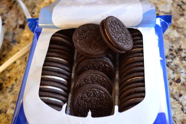 Open the package of delicious Oreos. I know, that step is obvious, but I liked this photo that I took of the cookies. 🙂