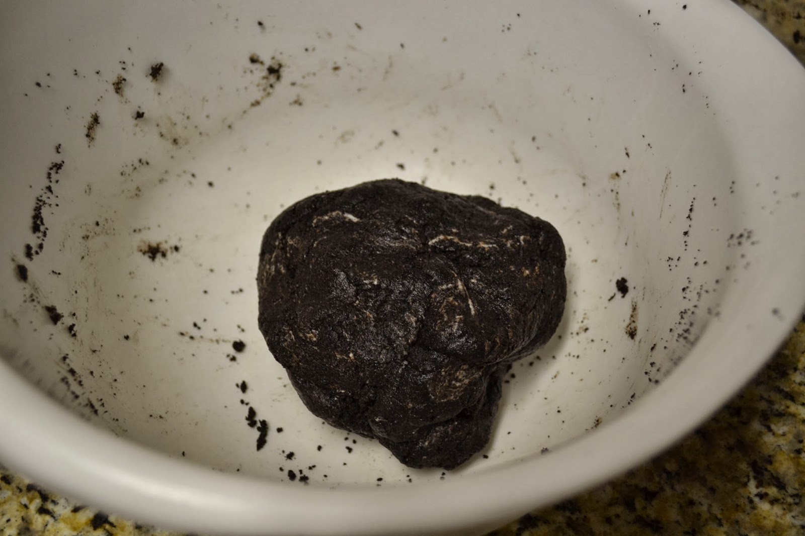 Next, mix in the cream cheese with the cookie crumbs. Again, I used a spoon last year which was so hard! Just mix them with your hands, it’s much, much easier. The “dough” will look like this: