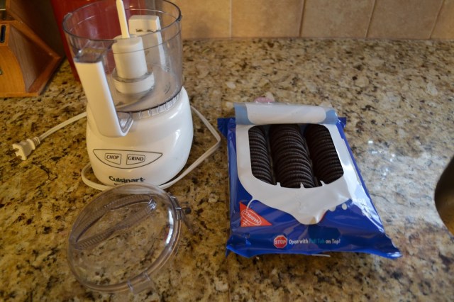 Place the cookies (filling and all) into your food processor.